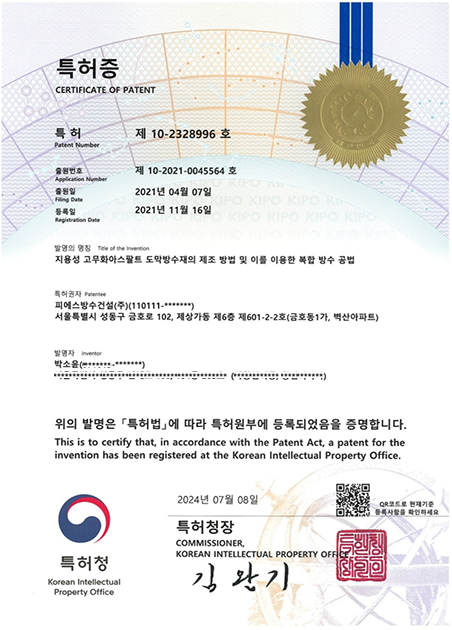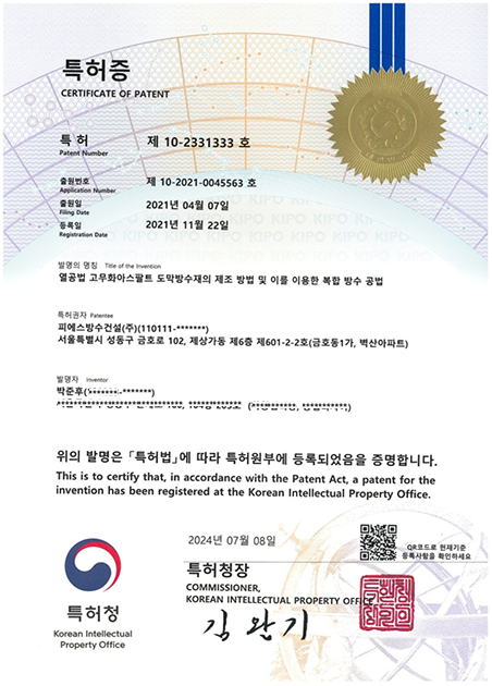 - 고성능 고무화아스팔트 복합방수 공법(열공법)
